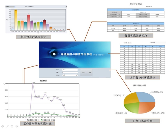 目前视频监控客流统计主要为大型商场、高档专卖店、博物馆、展览馆、大型会场、连锁店等公共场所等提供客流量数据,并提供各种图形化报表。该系统具有以下核心价值: