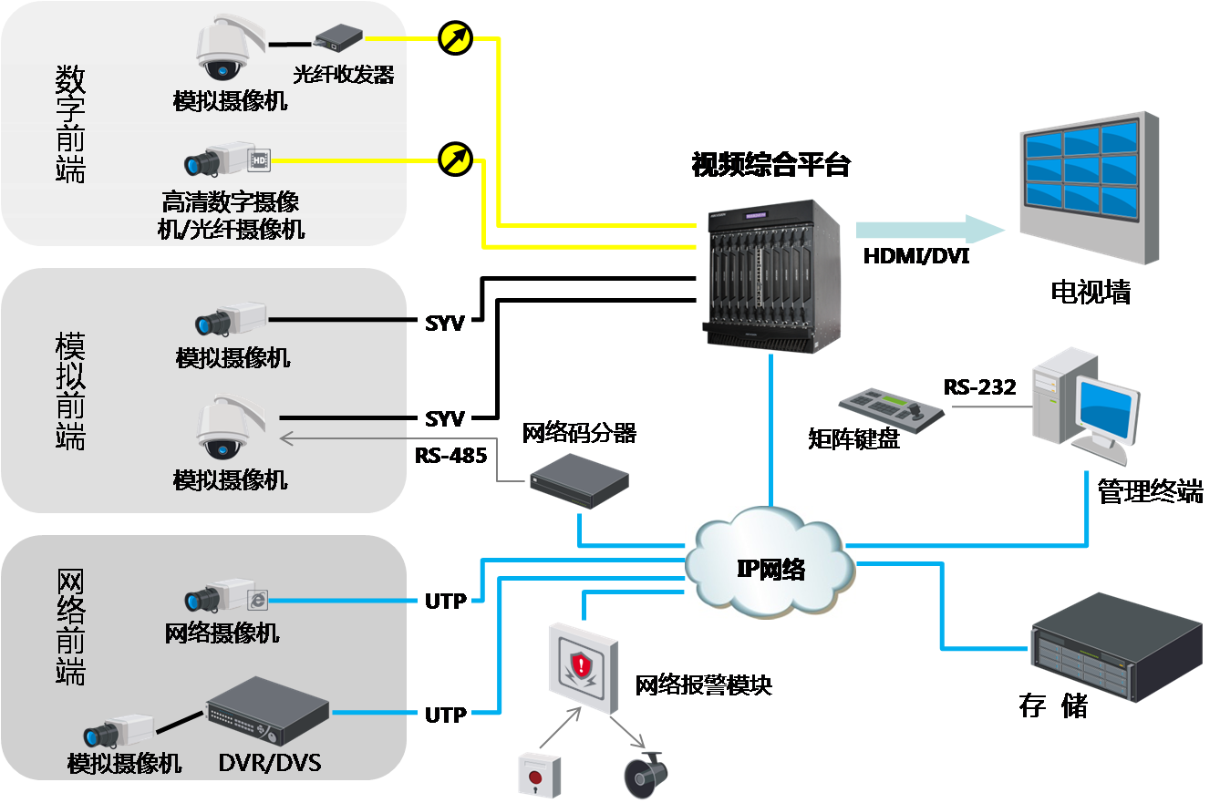 海康威视全球首家推出了混合矩阵——视频综合平台,如下图所示: