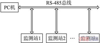 监测系统采用分布式结构, 如图2 所示。其中监测站完成温度的测量, 并通过RS- 485总线与PC机进行通信, 实现基于温度的MOA 在线监测。