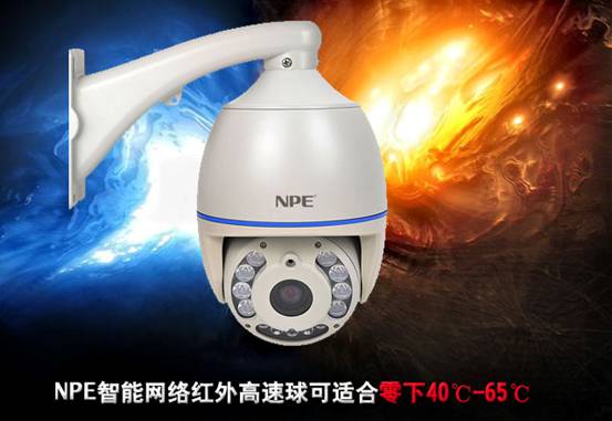 NPE新款智能红外高速球经过宽温测试,工作温度达到-40℃~65℃,可以适合在北方严寒以及一些高温环境下稳定应用。