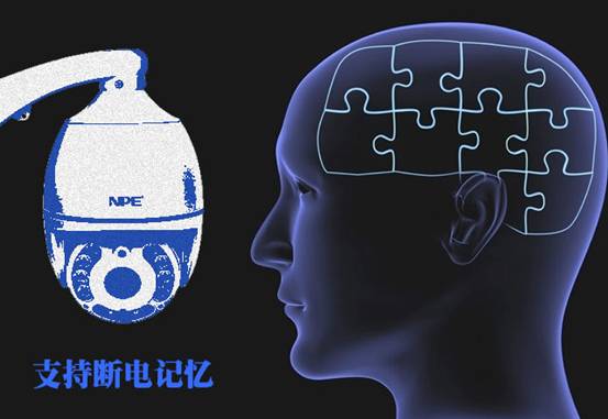 NPE智能红外高速球采用EEPROM数据存储方式,断电后存储数据不丢失,具有断电记忆恢复功能。